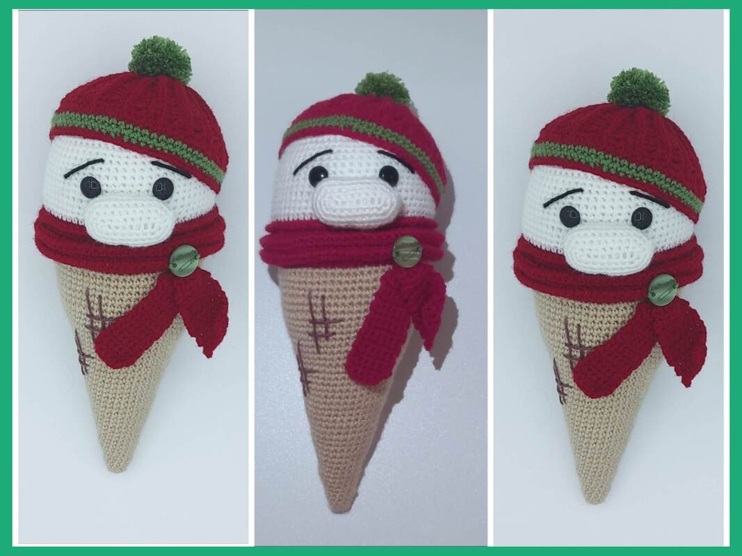 Auch im Winter schmeckt ein Eis, doch dem Eis war es zu kalt, da zog es sich was an. Mit Mütze und Schal hält es sich warm. Nein zum Essen ist es nicht gedacht, es ist zum Liebhaben gemacht .