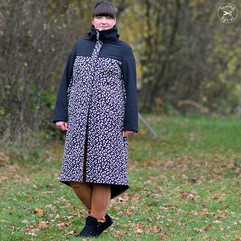 Die im Schnitt enthaltenen Ärmelstulpen mit Daumenloch und das warme Futter machen Nicandra wintertauglich. Die geräumige, abnehmbare Kapuze lässt sich bei Bedarf einfach und schnell mit dem Klettverschluss verkleinern, damit sie nicht zu tief ins Gesicht fällt. Auch der Ärmelsaum lässt sich mit Klett verstellen. Einschubtaschen und eine optionale Brusttasche mit Reißverschluss bieten viel Stauraum. Kordelzüge in der Taille und am unteren Saum bringen Nicandra in Form, ein Schlitz in der hinteren Mitte ist ein funktionelles und zugleich schickes Detail.