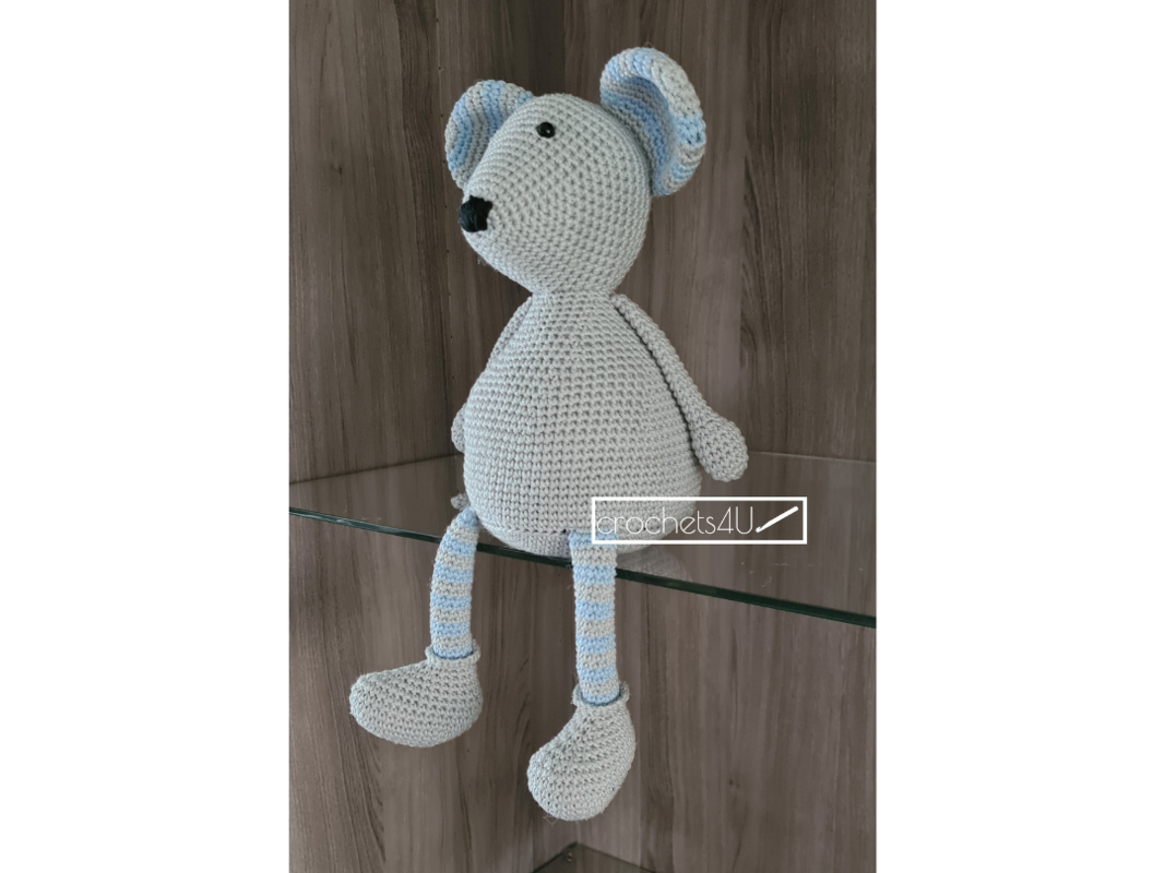 Due to the position of the behind legs, the mouse can sit easily. You can add granulate in the bottom to make it sit even better.