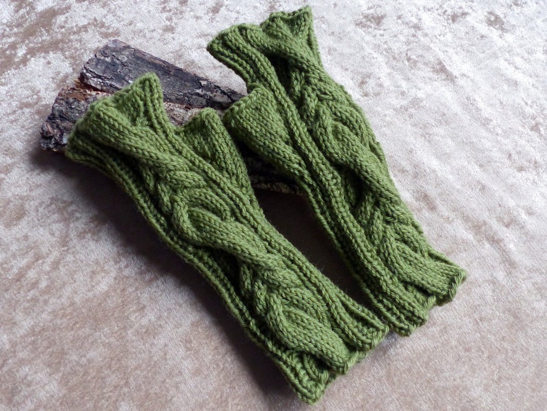 Das Zopfmuster geht über den gesamten Handrücken und durch den Daumenkeil und das Bündchenmuster haben die Stulpen eine optimale Passform.