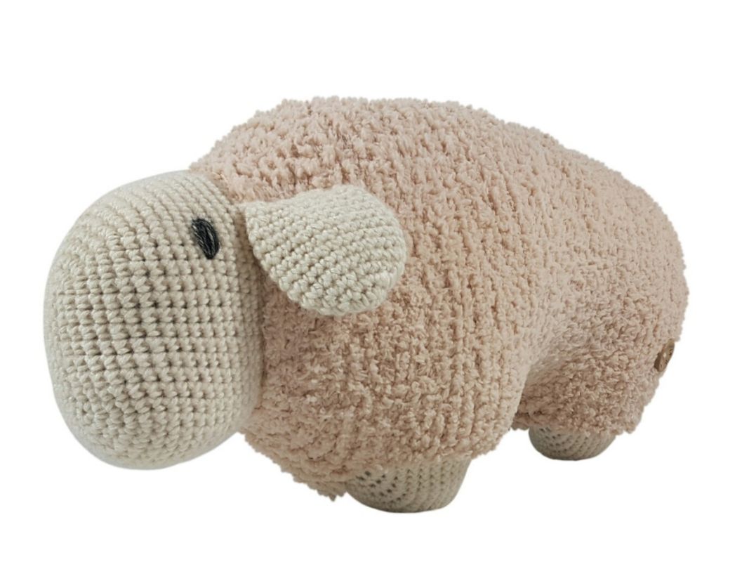 The sheep is crocheted with hook size 3 mm and matching yarn.