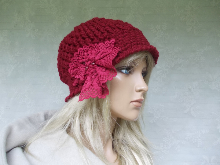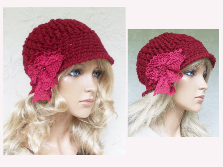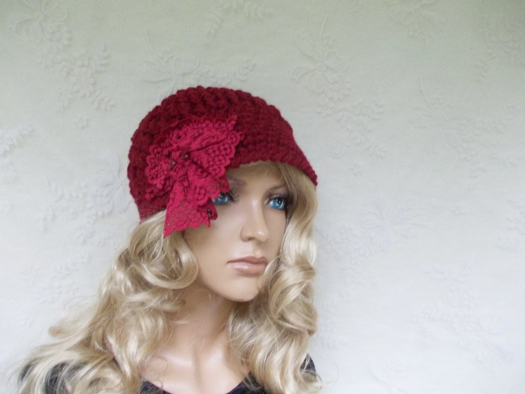 Eine Häkelanleitung (pdf-Datei, 5 Seiten, 135 KB) für eine elegante Kappe (Beanie-Kappe) im 20er/30er-Jahre-Look. Wie Ihr die Spitzenapplikation fertigen könnt, habe ich auch in der Anleitung beschrieben.