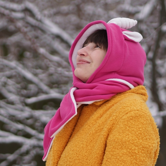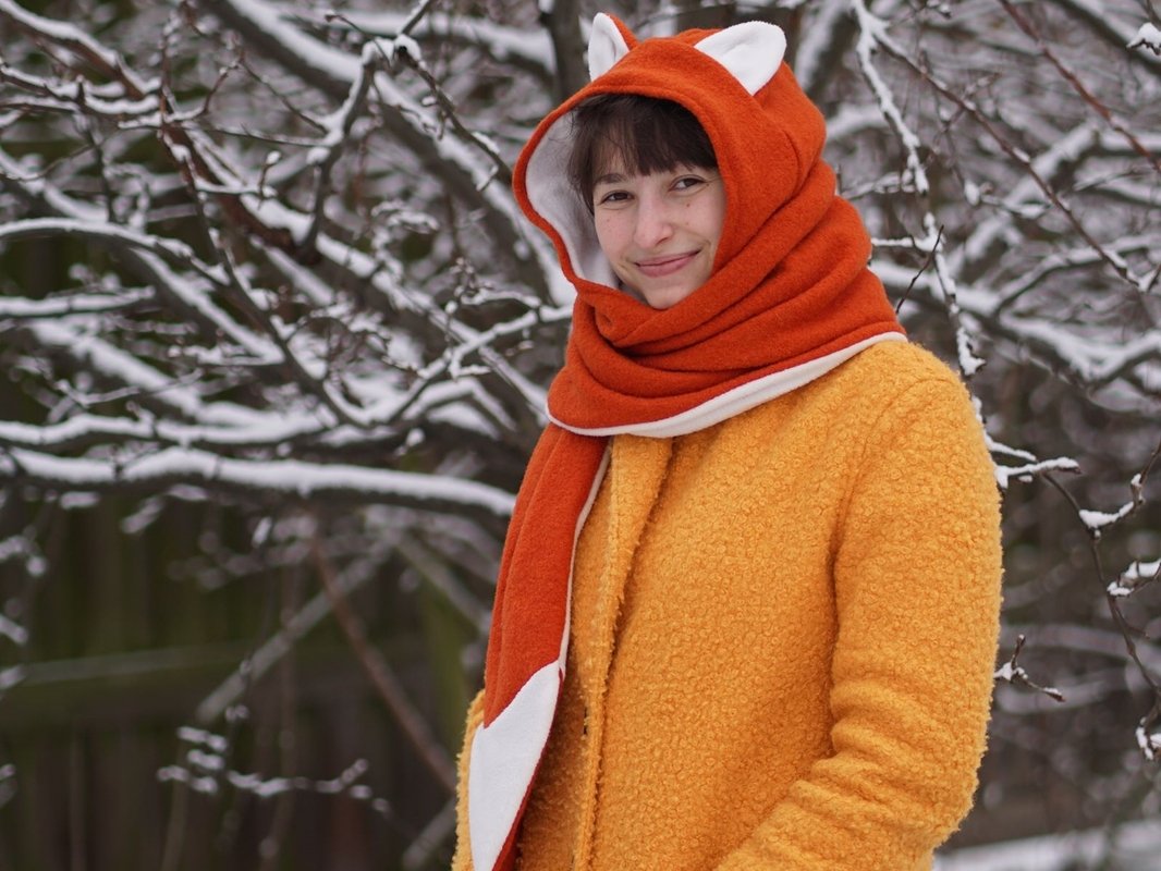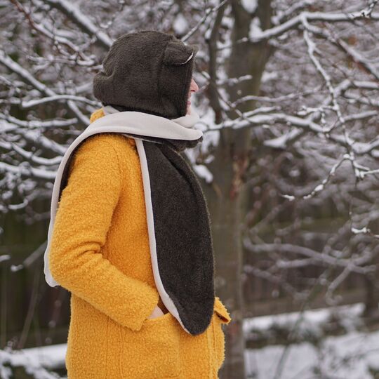 Ein allerliebster kuschliger Kapuzenschal mit Ohren.