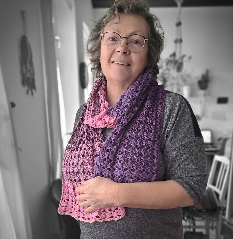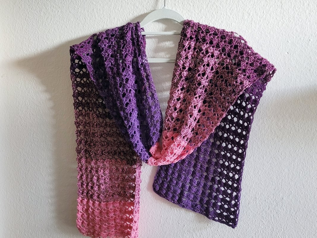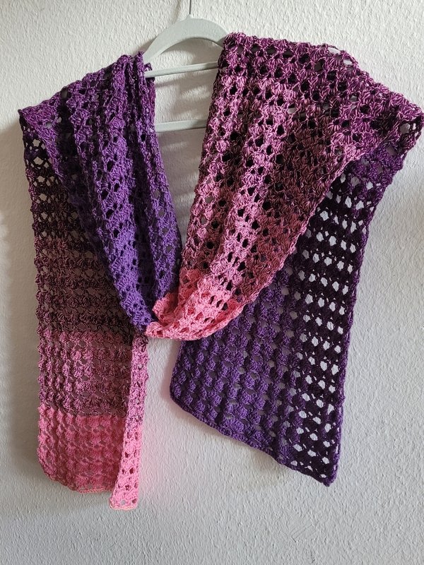 Gehäkelt in einem eingängigen Muster aus einem Farbverlaufsgarn.