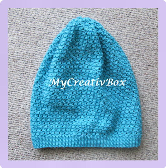 Die Anleitung hat 6 Seiten (inkl. Bildern) und die Mütze wurde gehäkelt mit Sockenwolle 4-fach, LL 100g/420m.