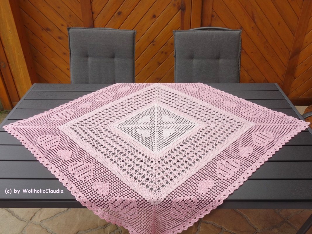 Dieses wunderschöne Set bestehend aus Tischläufer und Mitteldecke ist ein Mix aus Filethäkeln und dem herkömmlichen häkeln und macht nicht nur an Valentinstag oder Muttertag Freude.