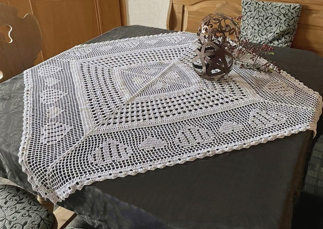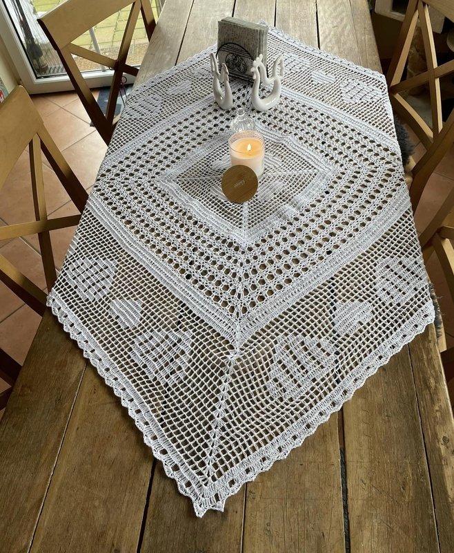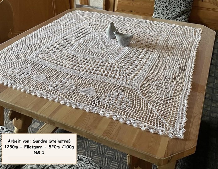Man kann sie mit jeder beliebigen Nadel- und Garnstärke anfertigen und ist somit für kleine als auch große Tische geeignet.