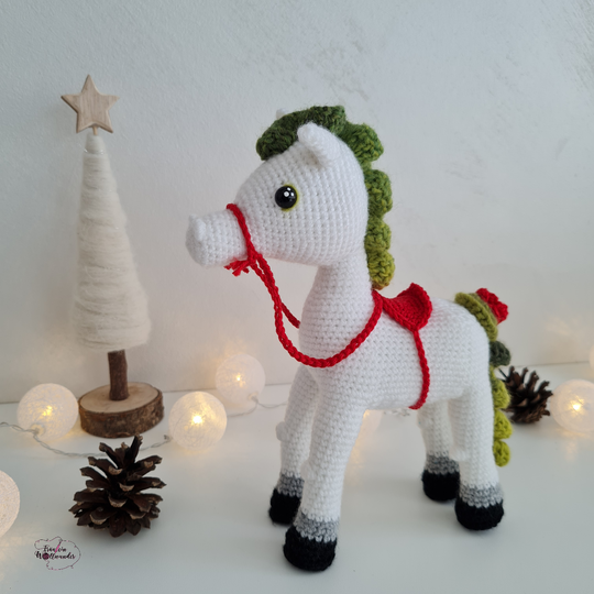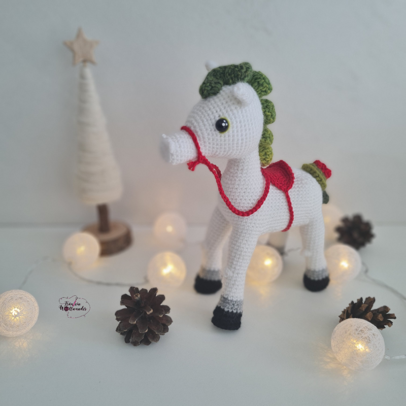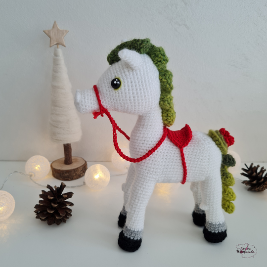 Du bekommst beim Kauf eine vollständige, bebilderte Anleitung zum Nachhäkeln des Pferdes, außerdem noch für