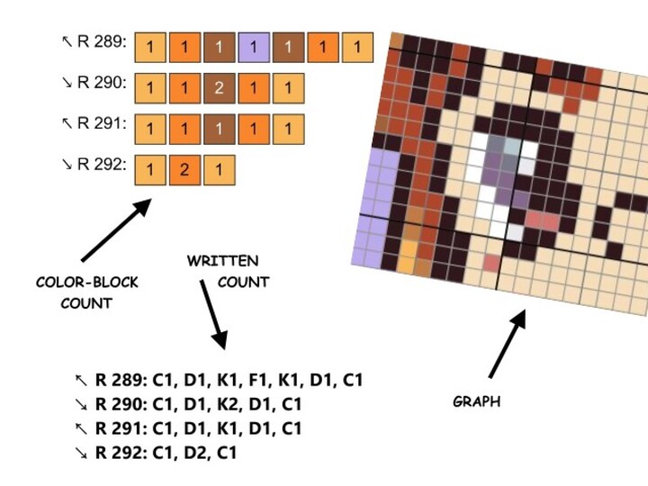 -farbige Zahlen-Blöcke für jede Zeile für C2C-Technik