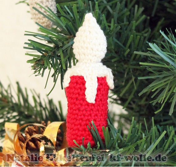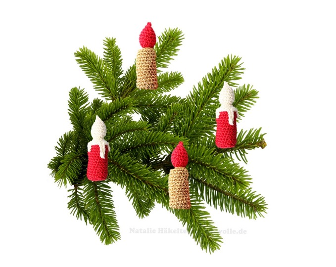 Die umfangreiche, reichlich bebilderte PDF-Häkelanleitung zum Häkeln von Tannenbaumschmuck "Kerzen" zum Dekorieren des Tannenbaums oder als Mitbringsel für die Freunde. Die Kerze kann man auch als Schlüsselanhänger benutzen. .