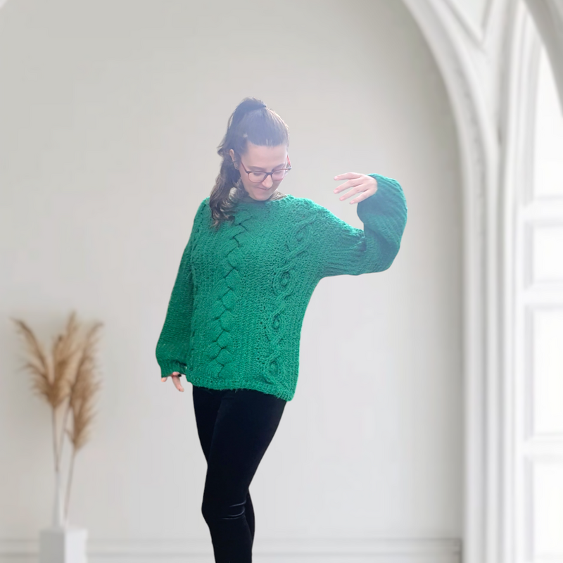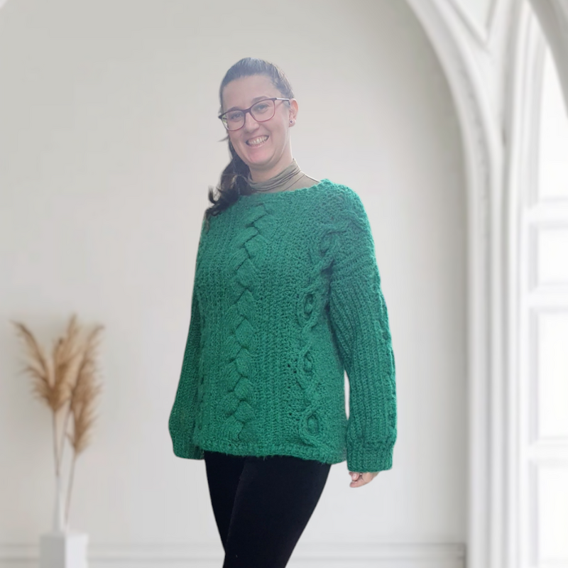...ist die perfekte Wahl für alle, die Häkeln lieben und dabei auf moderne Mode nicht verzichten möchten! Sein einzigartiges Design kombiniert ein bezauberndes Zopfmuster mit einem lässigen, oversized Schnitt, der aussieht wie gestrickt – ein echter Hingucker und super bequem zugleich.