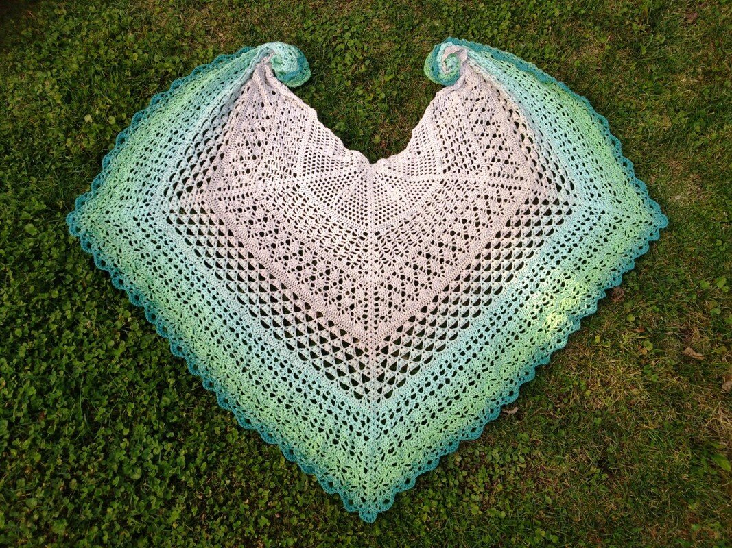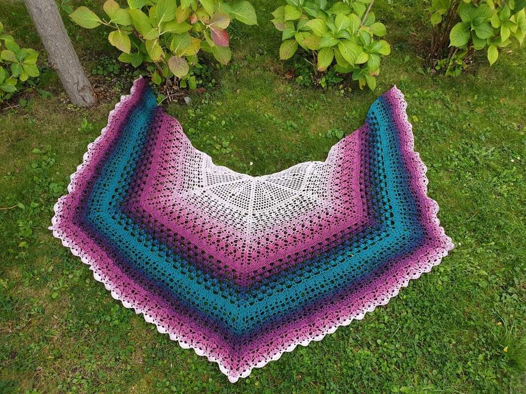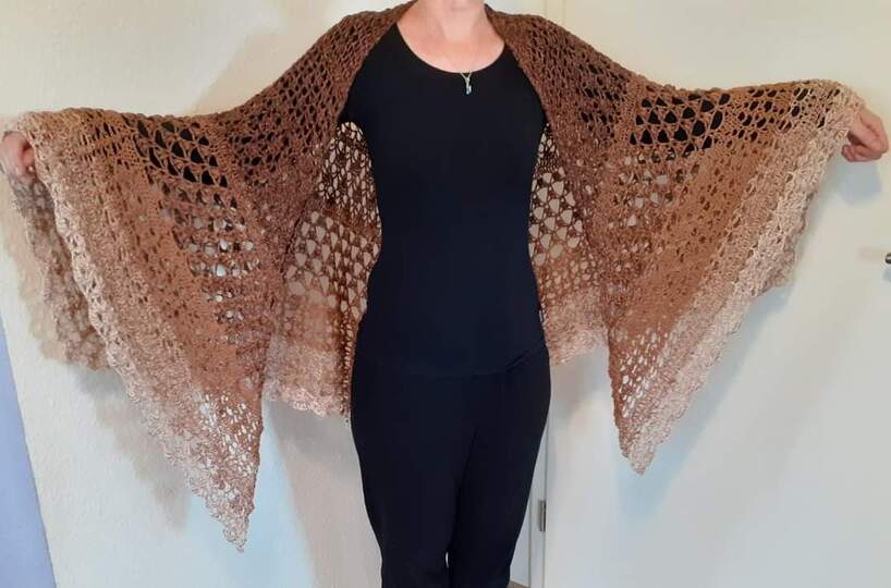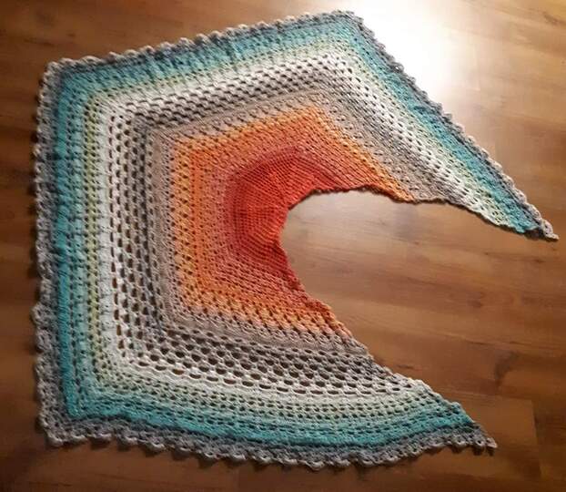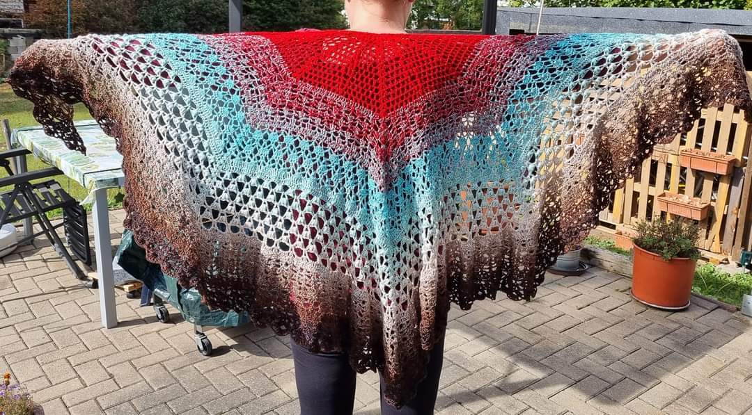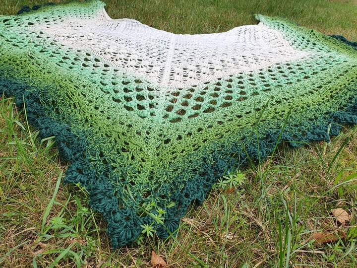 Du bekommst hier eine Anleitung für ein gehäkeltes 5-Eck-Tuch.