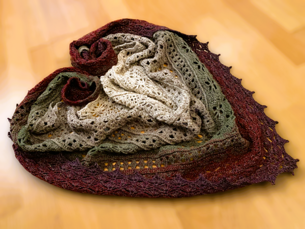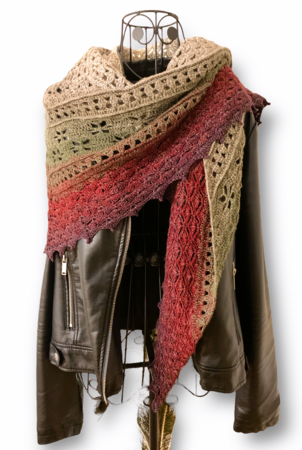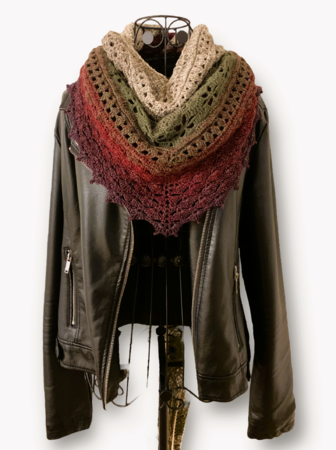 Graia ist ein abwechslungsreiches, flaches Dreieckstuch, das durch bezaubernde Muster besticht und ein wundervoller Blickfang ist.