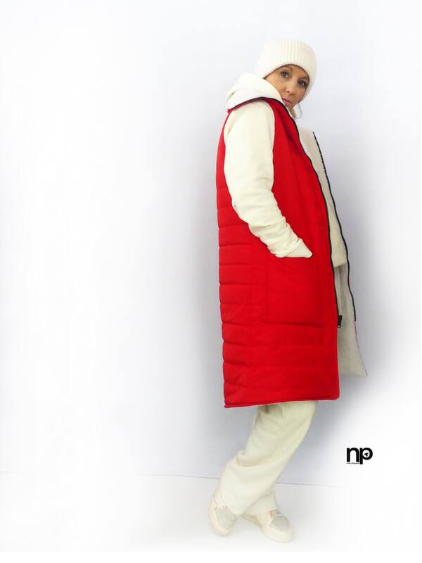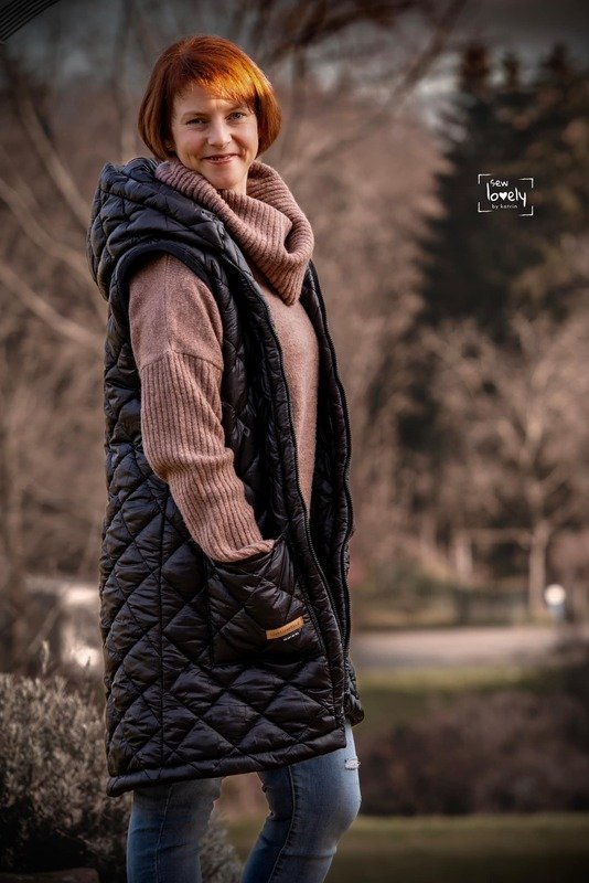 COBURG ist ein Westenschnitt in den Größen 34-54. Du kannst zwischen Kapuze oder Kragen wählen. Ebenso sind 2 Taschenvarianten enthalten. Du kannst die Weste mit Innenfutter (extra Schnittteile) oder ohne Futter mit Beleg nähen. Bei dem Verschluss kannst du dich zwischen Knöpfe und Reißverschluss entscheiden. Der Schnitt enthält auch 3 Längen für die Körpergrößen 1,58/1,68 und 1,78. Ebenso kannst du eine Weste in kurzer Jackenlänge nähen. Auch da sind 3 Längen enthalten