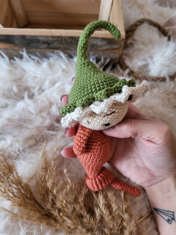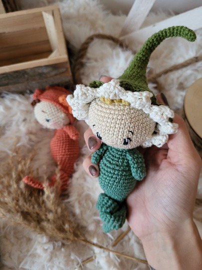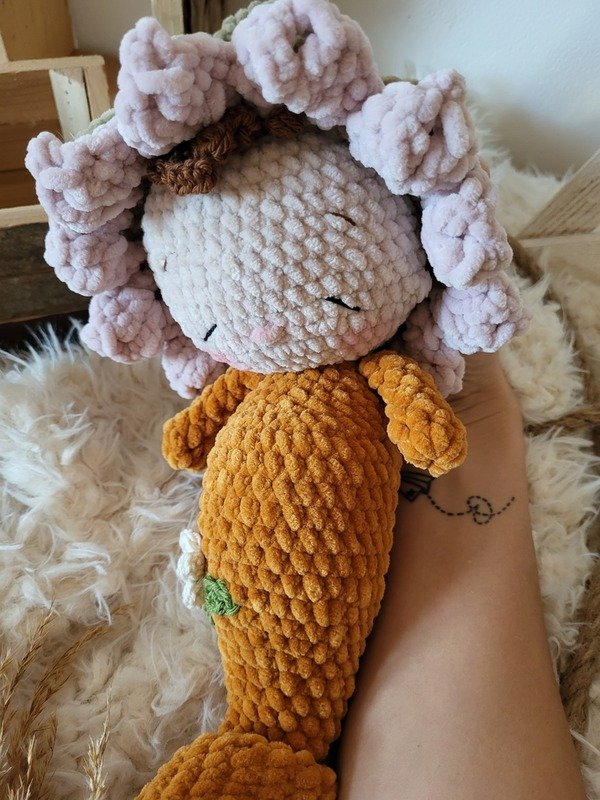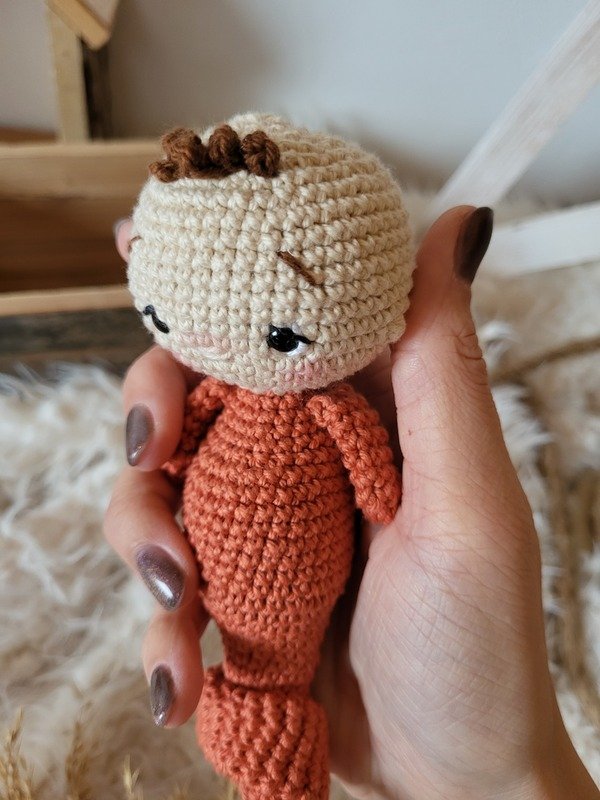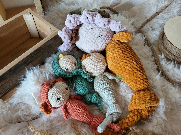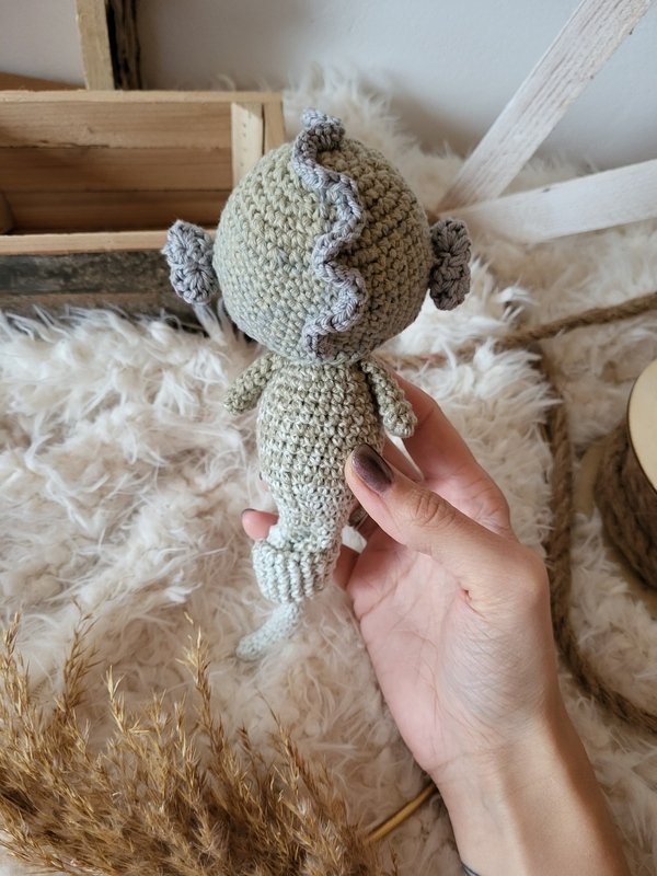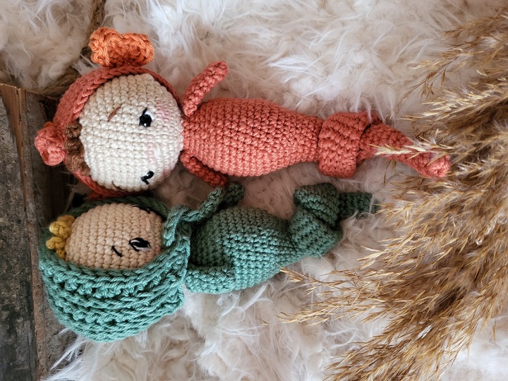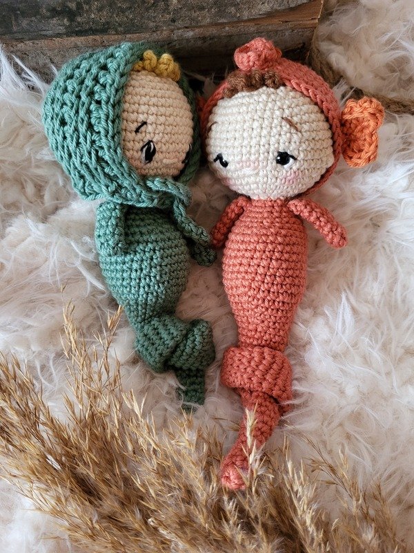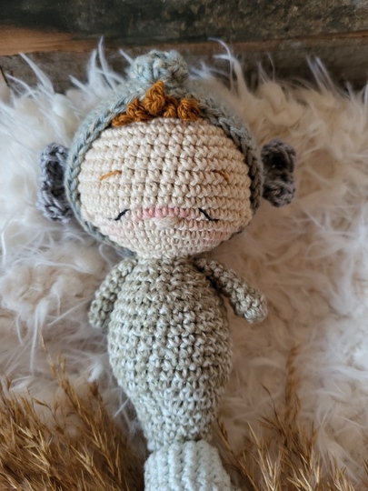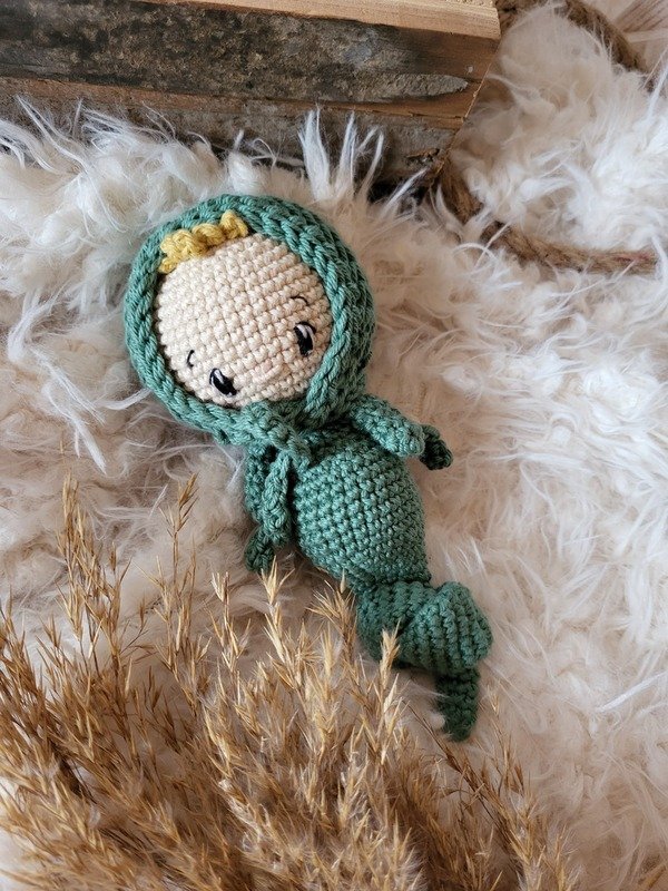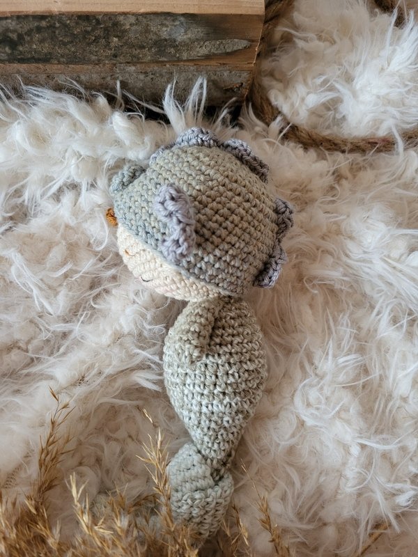 Die Anleitung beinhaltet drei verschiedene Kopfbedeckungen, so kann Uno ein Baby, ein Seepferden oder ein Blumenkind sein.