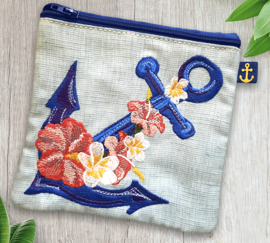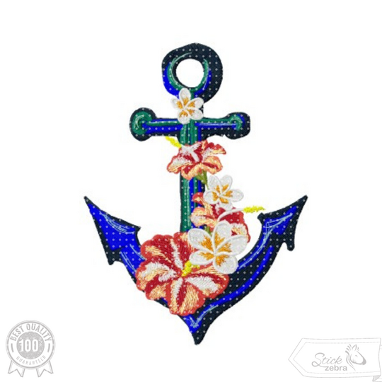 Ein Anker voller Fernweh und Blütenpracht – dieses ausdrucksstarke Stickmotiv vereint die Kraft des Meeres mit der Schönheit tropischer Blumen.