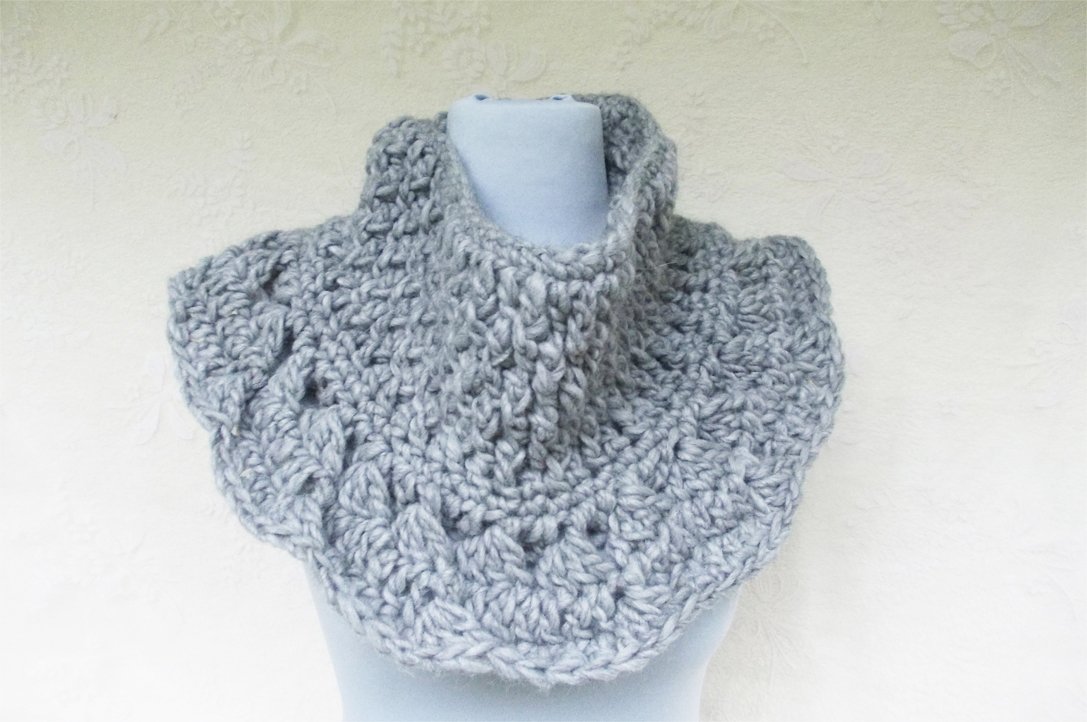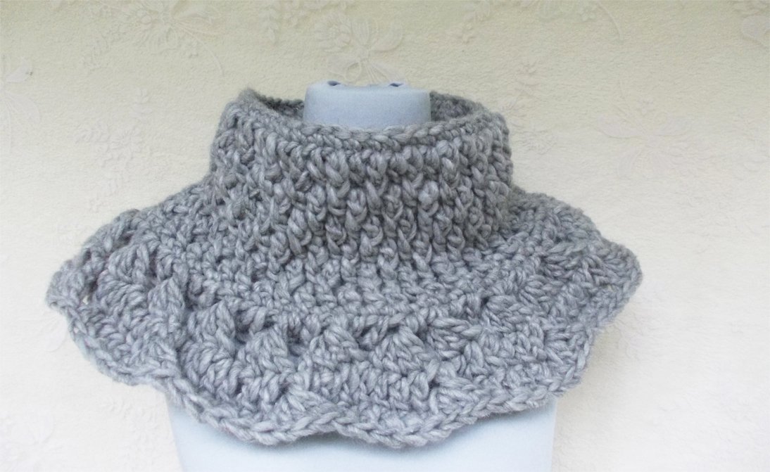 Eine Häkelanleitung für einen Rundschal mit kleinen eingehäkelten Flügeln in der Passe, die Halspartie in einem edlen plastischen Muster, super einfach zu häkeln. Anfänger sollten sich ruhig ausprobieren, Häkeln macht einfach süchtig und ich habe hier auch Tipps in der Anleitung, welche vielleicht auch für Profis interessant sind. Wir häkeln mit Häkelnadel Nr. 8, mit Wolle oder Mischgarn (außer Effektgarn), oder auch Acryl. Näheres in der Anleitung, pdf-Datei, 6 Seiten, 159 KB, ohne Arbeitsbilder.