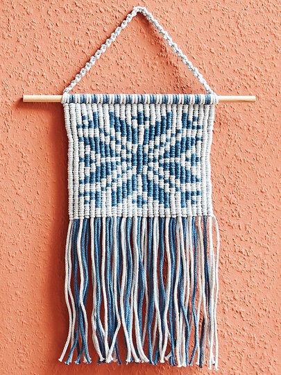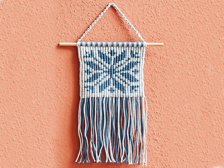 Dieser Sschöne Wandbehang ist leichter zu knüpfen als es auf den ersten Blick aussieht. Ganz Geschickte schaffen mit der Anleitung bestimmt auch eigene Motive.