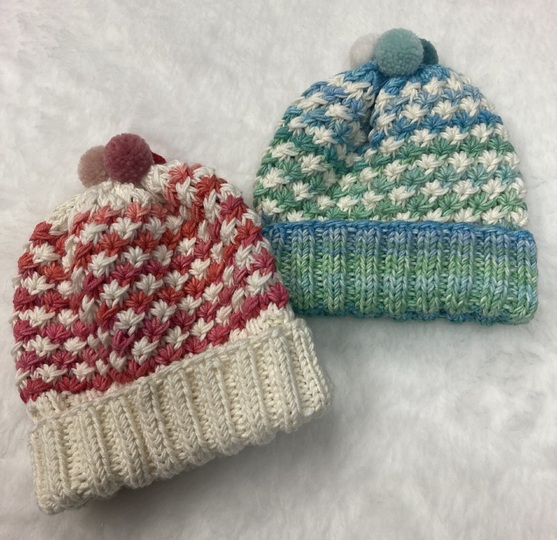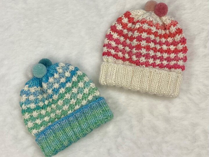 Nach dieser Anleitung kannst Du eine richtig schöne warme Wintermütze im zweifarbigen Sternchenmuster stricken.