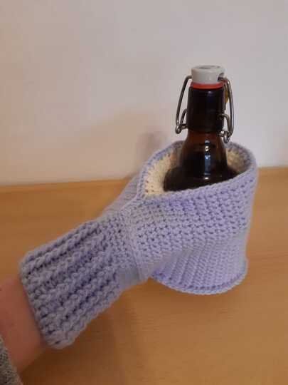 Der Handschuh hat so ziemlich eine Einheitsgröße, da nicht nach Fingelänge gehäkelt werden muss. Nur das Bündchen muss evtl. breiter oder schmaler gemacht werden.