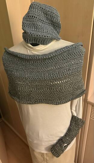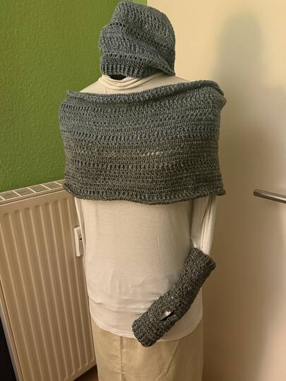 Es kann mit jedem gewünschten Garn gehäkelt werden. Für den Loop werden etwa 500 m Lauflänge benötigt, für die Beanie etwa 200 m.