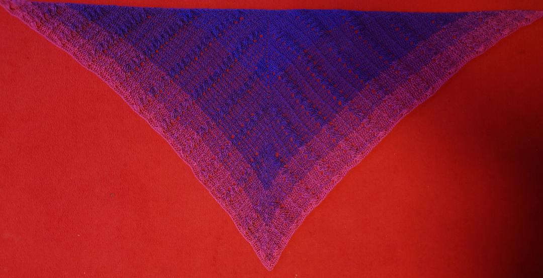 Die Anleitung zum Tuch besteht aus schriftlich ausformulierten Reihen und beinhaltet eine Häkelschrift.