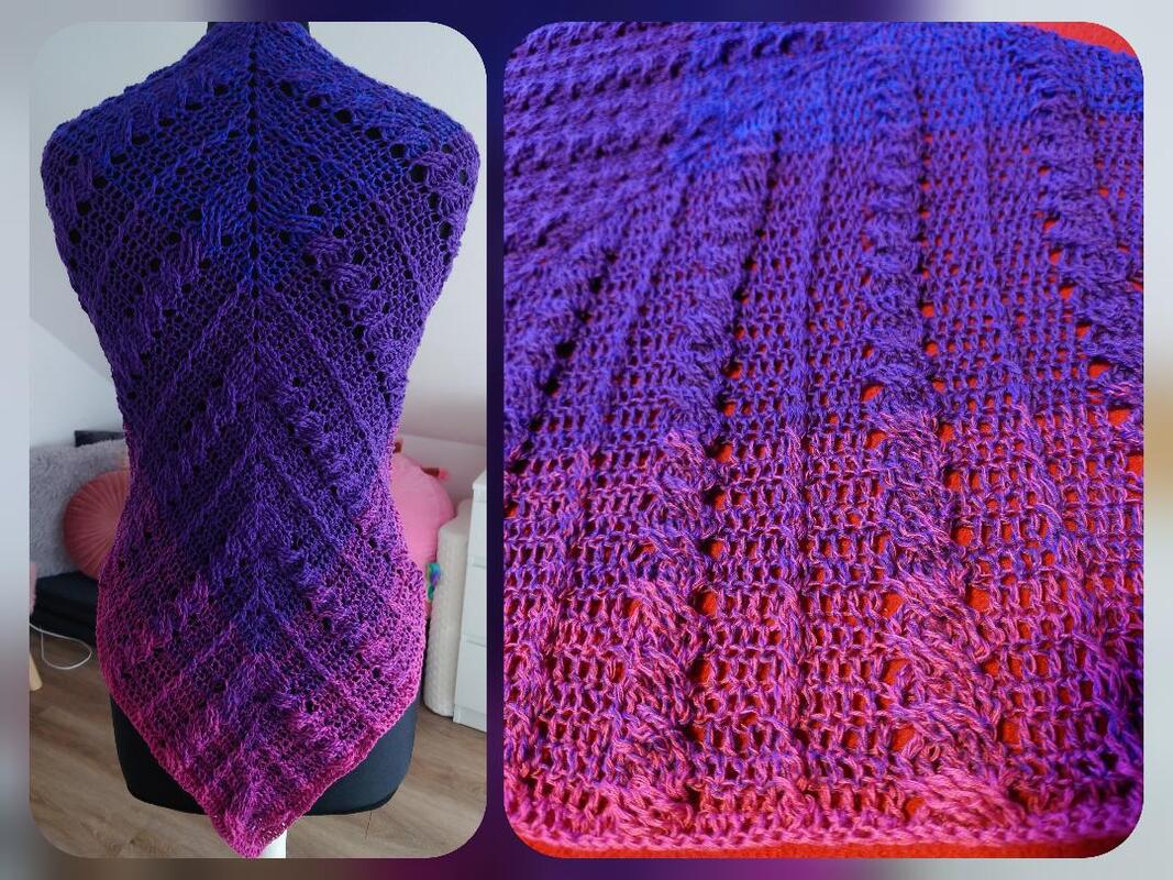 Das Tuch ist, durch sein Zopfmuster, sehr kompakt und kuschelig.