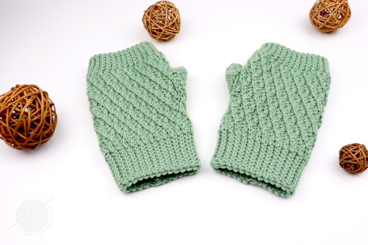 Warme Handschuhe (Handstulpen) mit dem Reliefmuster "Flora" für die ganze Familie (im Stricklook)! Die Handschuhe haben nur eine Naht von hinten und werden um die Hand herum als ein Teil gehäkelt.