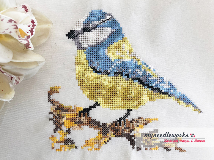 Taschen, Bilderrahmen oder Accessoires wie Kissenbezüge, Tischdecken oder Sonstiges verzieren - mit den Kreuzstich-Stickmuster "Blaumeise" wird jedes Stück zum Hingucker.