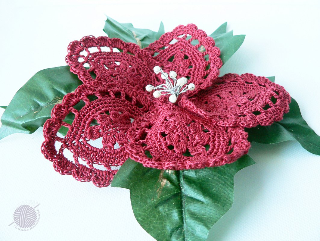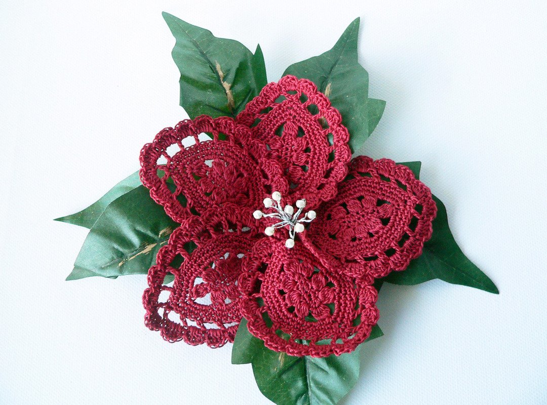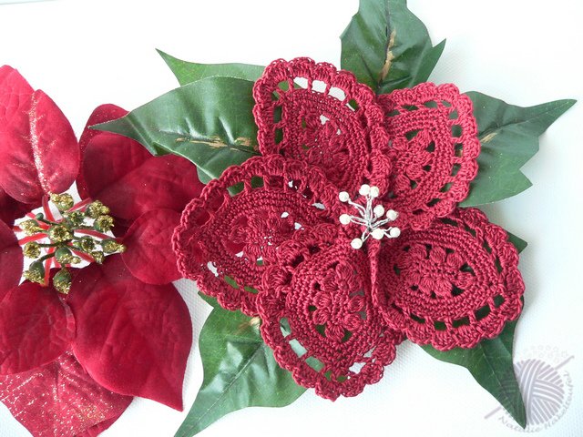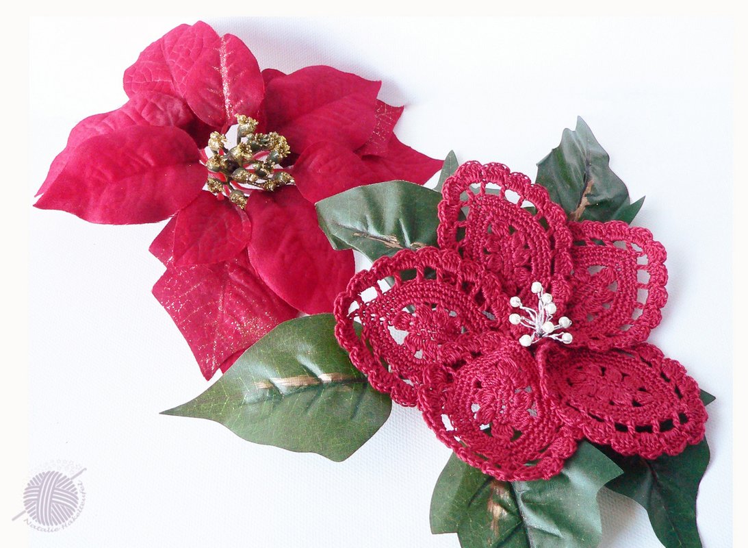 Bebilderter Anleitung zum Häkeln von einer Blume (Weihnachtsstern). Damit können Sie Weihnachtssterne häkeln, zum Dekorieren des Hauses, zum Basteln oder zum Verschenken. Durchmesser ca. 12 cm.