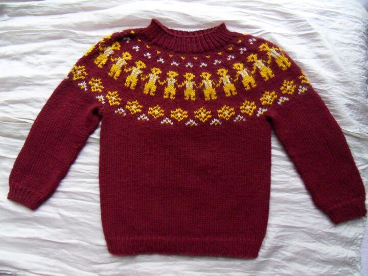 Sie erhalten eine Anleitung für einen gestrickten Pullover mit Musterpasse,