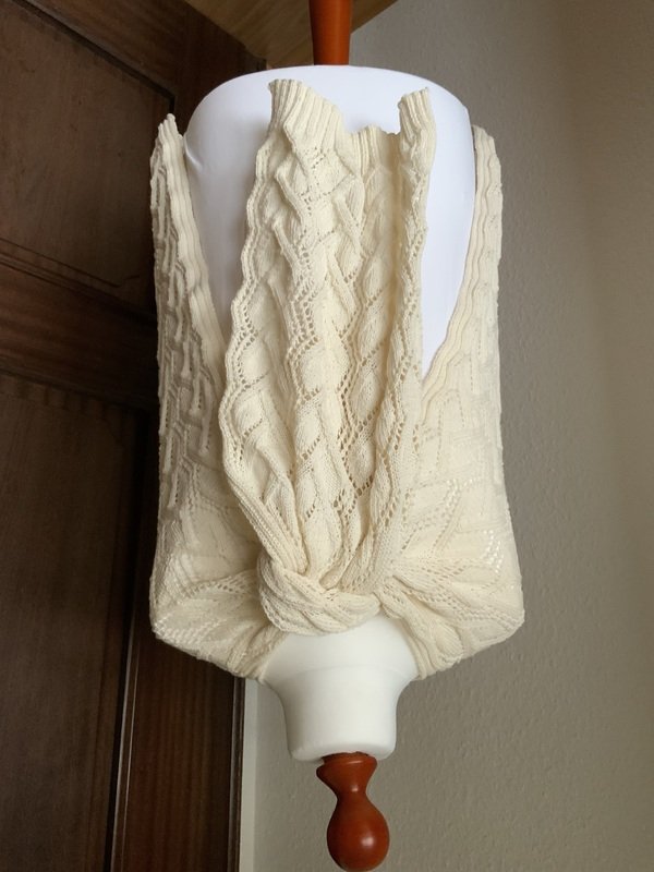 rechte und linke Maschen, Umschläge,Maschen überzogen zusammenstricken, Muster nach Chart stricken.
