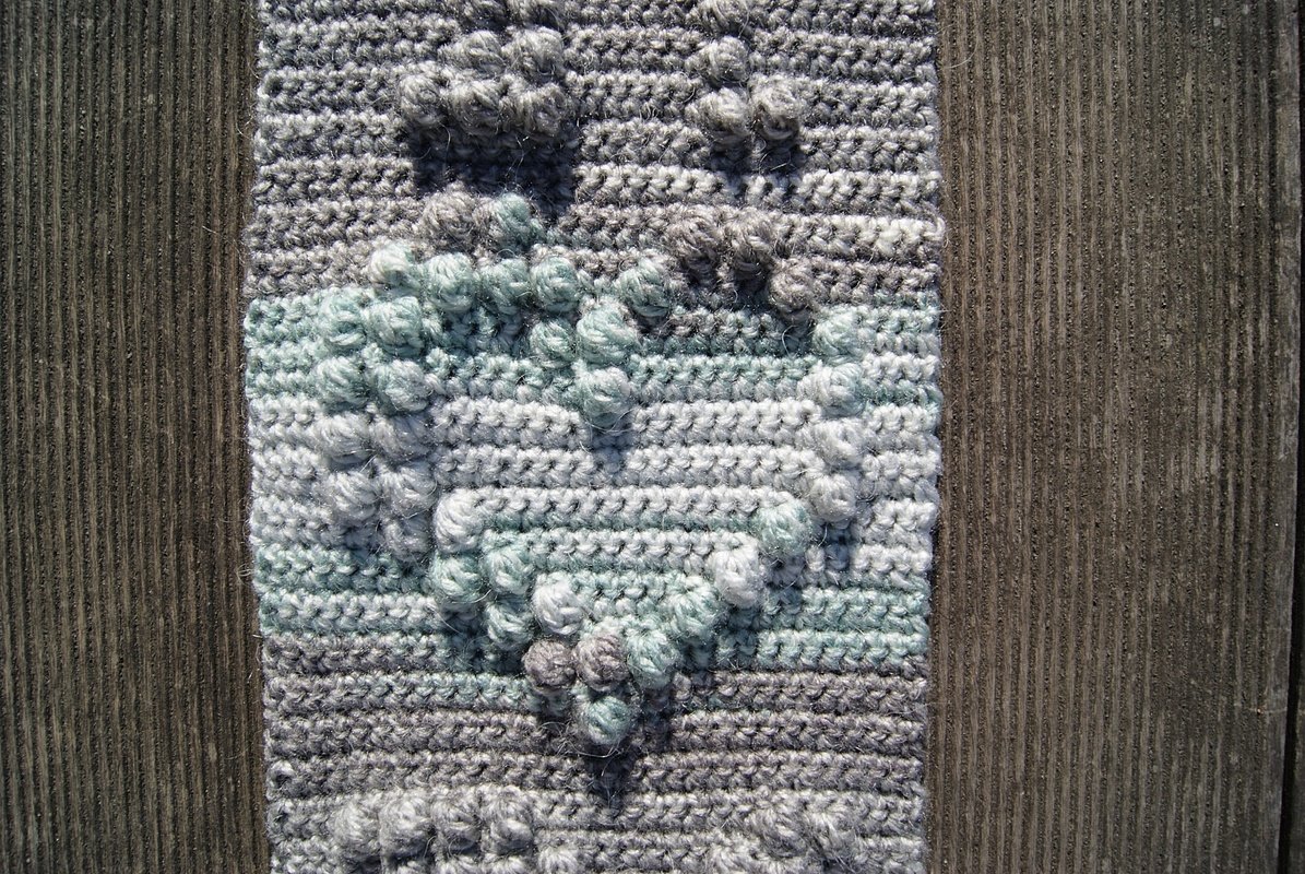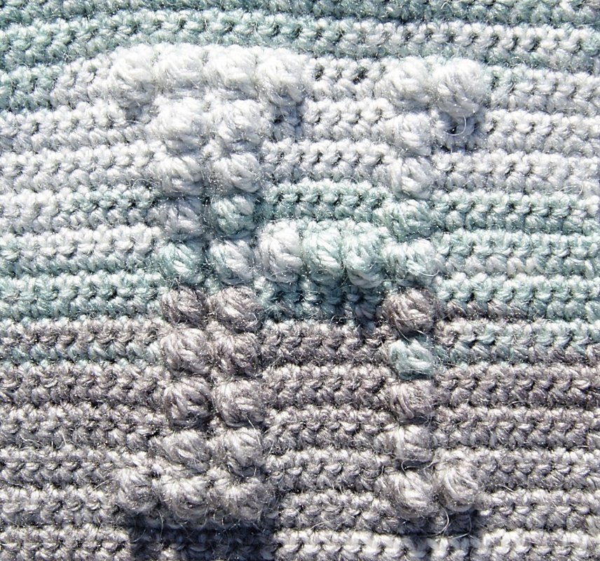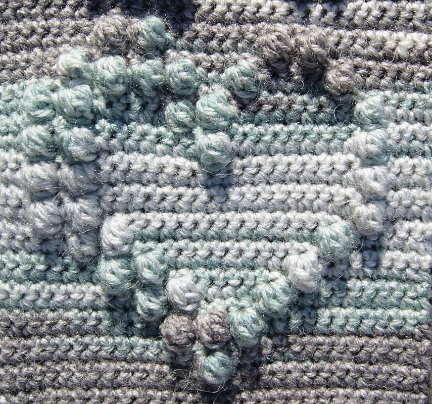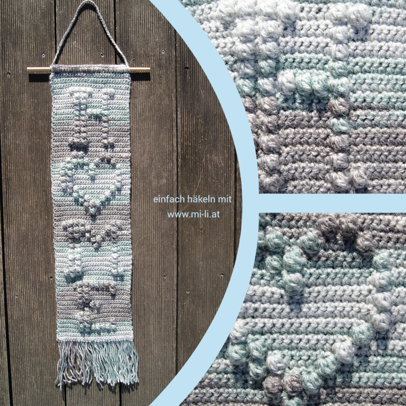 Die Anleitung ist einfach Reihe für Reihe mit einem einfachen Noppen-Zählmuster erklärt.