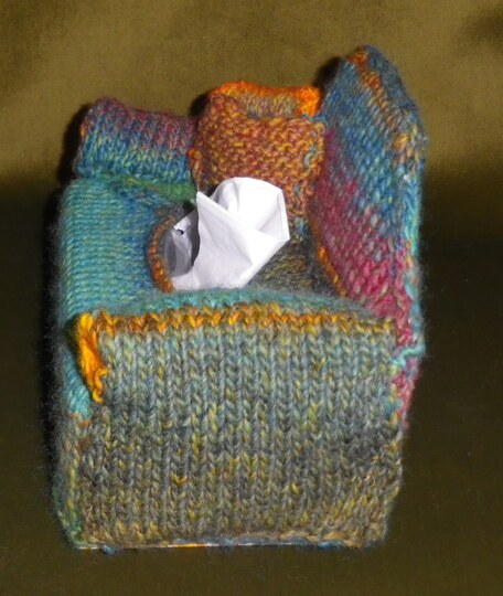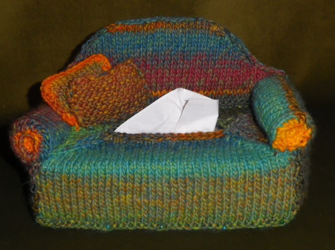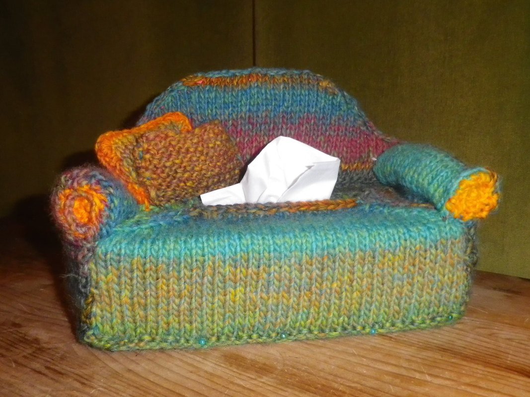 Dieses gestrickte Sofa ist ein Überzug für Taschentuchboxen. Es eignet sich sowohl als praktischer Schnupfenhelfer als auch als dekoratives Wohnraum-Accessoire. So macht Schnupfen richtig Spaß. Fertigen Sie es farblich passend zu ihrem Wohn- oder Schlafzimmer an!