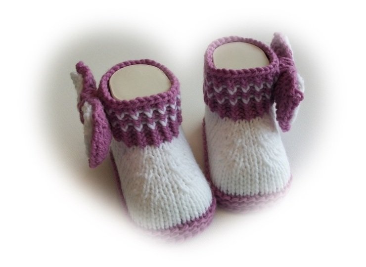 Mit dieser Anleitung kannst Du diese Schuhe mit Schleife in der Größe 9cm nacharbeiten.