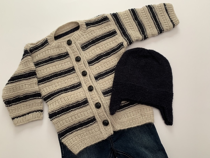Diese Kinderjacke wird von unten nach oben gestrickt. Die Ärmel werden direkt an den Armausschnitten angestrickt damit so wenig wie nötige Nähte entstehen. Stricke dann für die Blenden zuerst doppelte Auffaßränder damit der mitgeführte Faden nicht sichtbar ist.