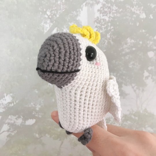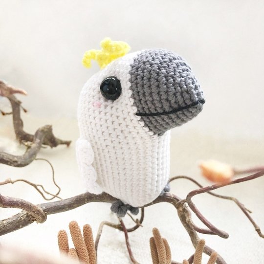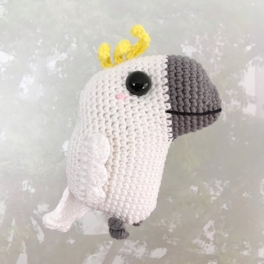 Der Kakadu Kico wird in einem Stück gehäkelt, beginnend beim Schnabel. Es muss nichts angenäht werden, denn auch die Flügel werden eingehäkelt.