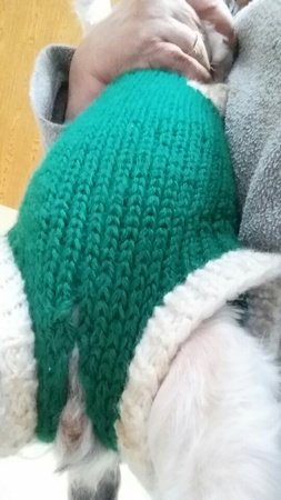 lecker warm auch am Bauch und schützt vor Blasen- und Unterleibserkältungen mit Ausschnitt, damit es nicht nass wird beim Gassigehen,