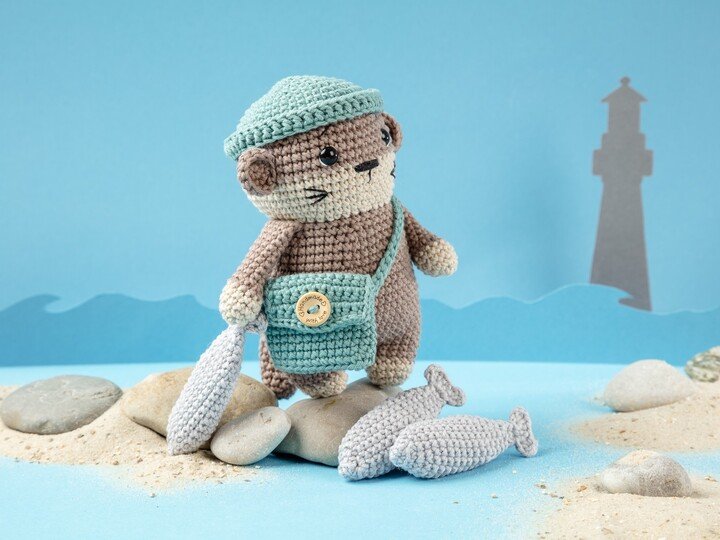 Dies ist eine digitale Häkelanleitung für den Fischotter Ole. Die Anleitung enthält viele Detailfotos und eine ausführliche Beschreibung der einzelnen Arbeitsschritte. Die Figur kann daher auch von Anfängerinnen und Anfängern nachgearbeitet werden. Häkelgrundkenntnisse sollten jedoch vorhanden sein. Die Anleitung enthält die Beschreibung für den Fischotter, den Fisch und die kleine Tasche.