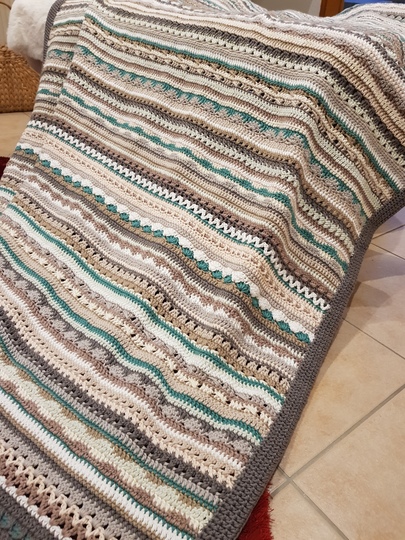 Die Decke kann in beliebiger Größe und mit beliebigem Garn gearbeitet werden.