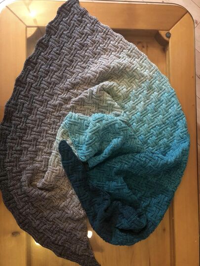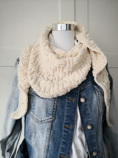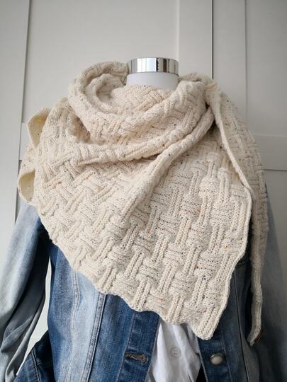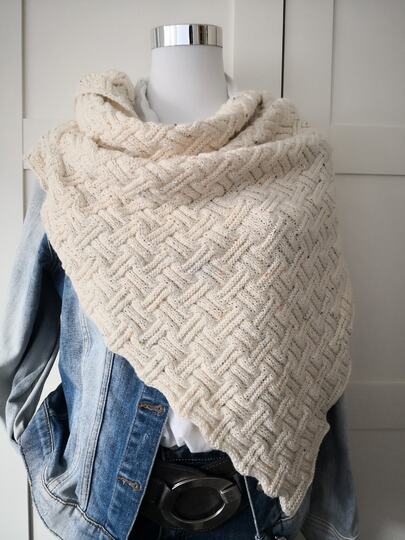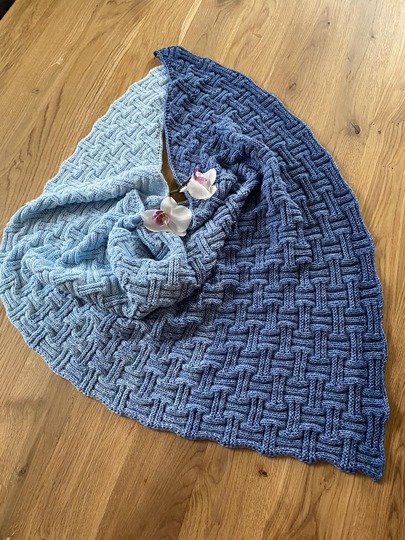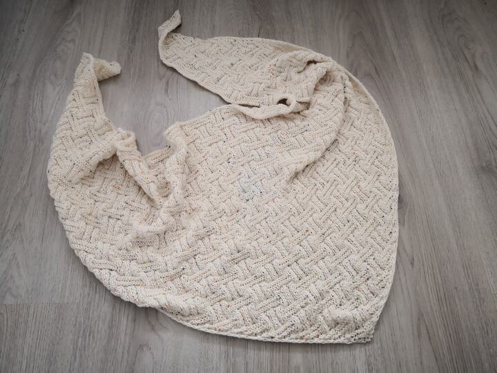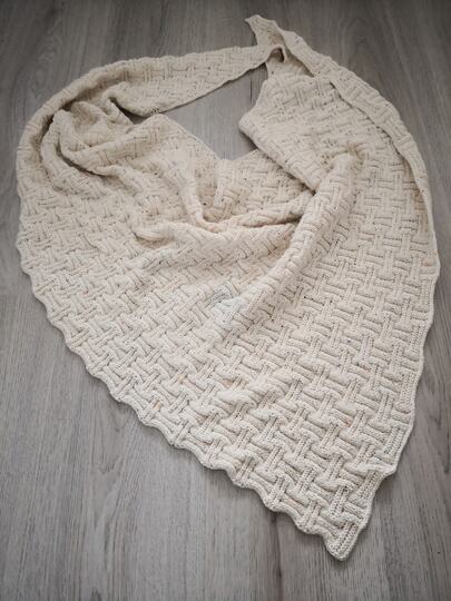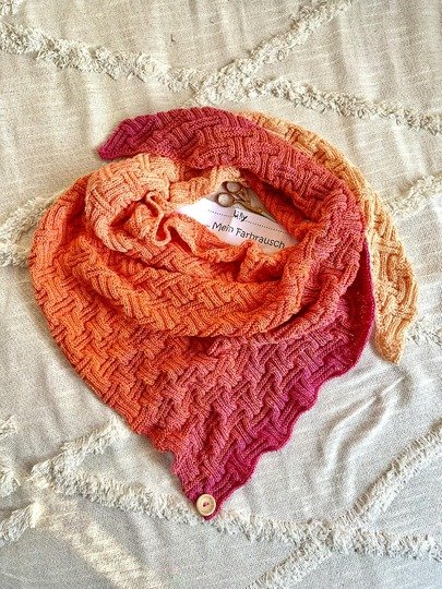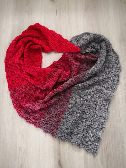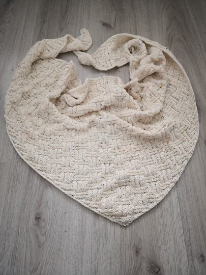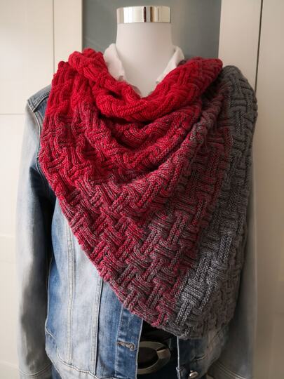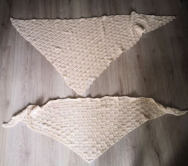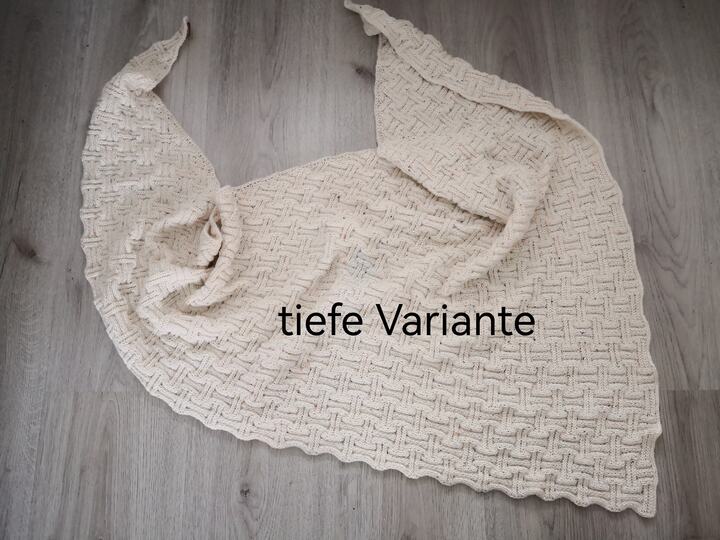 Die flache Variante ist ein symmetrisches Dreieckstuch Verbrauch ca. 800 LL