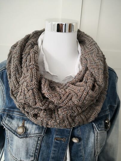 Mein Loop ist 20 cm breit, und vor dem zusammen nähen 146 cm lang.