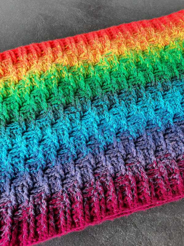 Die Anleitung für den Loop "Avalanche" ist ein "Muss" für alle Reliefstäbchenliebhaber. Ihr habt die Möglichkeit euch einen klassischen Loop oder eine Halssocke zu häkeln.