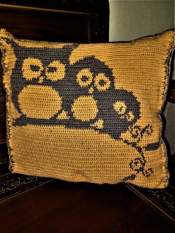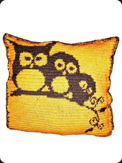 Hier bekommt Ihr eine Anleitung um Euch ein Kissen mit dem Motiv einer Eulenfamilie zu häkeln.