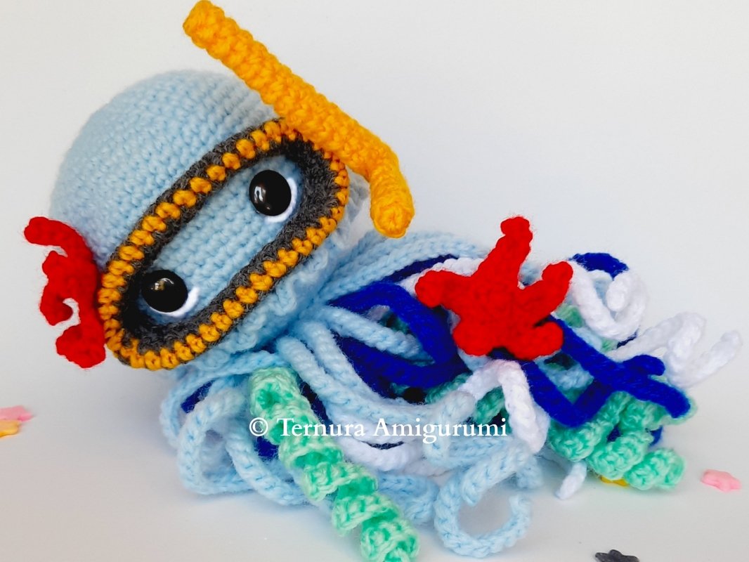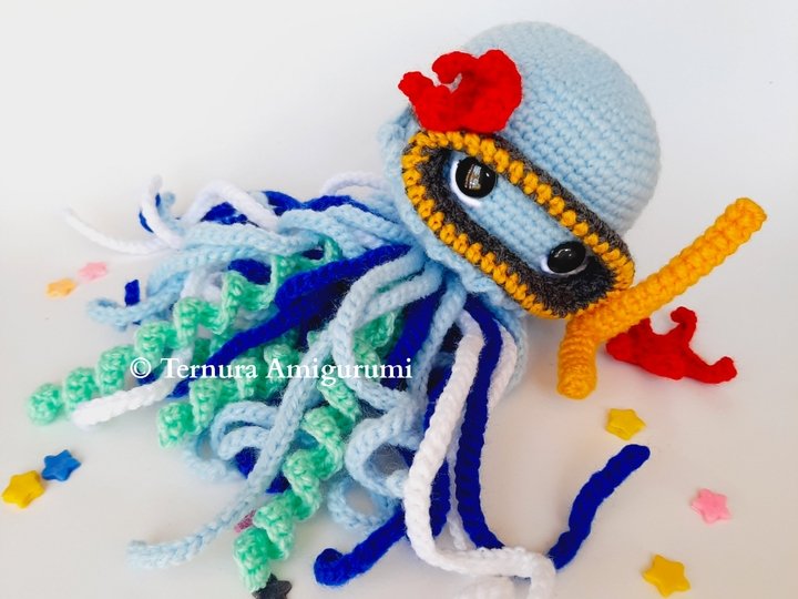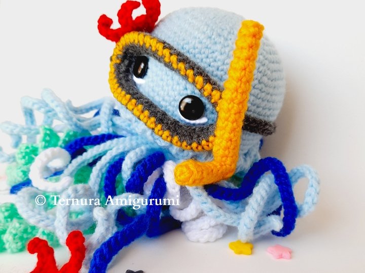 Eine Qualle, die eine Brille mit einem Sauerstoffschlauch verwendet, ein Tier, das Schwierigkeiten hat, sich an seine Umgebung anzupassen. Wer hat das nicht schon erlebt?