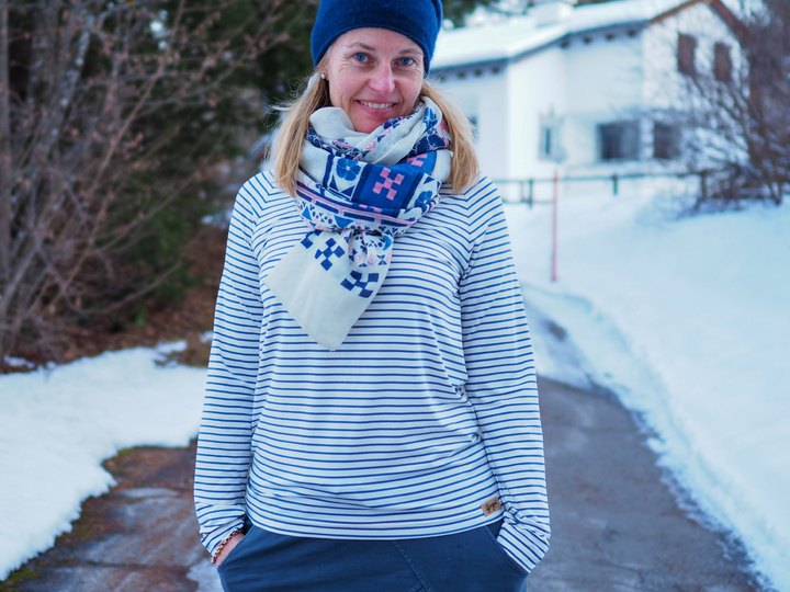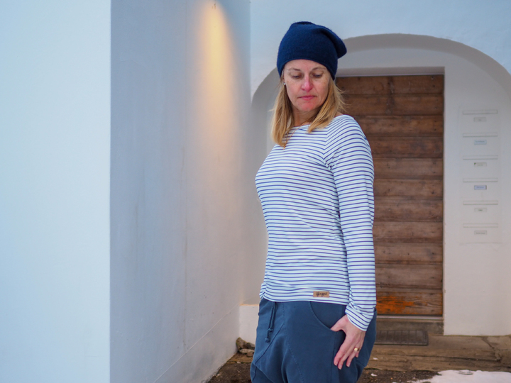 Dieses Schnittmuster gehört zur neuen Basic Line meiner Designs und ergänzt so deine vorhandene Garderobe durch ein neues, vielfältig kombinierbares Kleidungsstück. Sein leicht legerer, klassischer Schnitt und die 2 wählbaren Halsausschnittweiten machen den Schnitt zu einem echten Capsule Wardrobe must have. Vom Business Pullover fürs Büro bis hin zum warm up Oberteil deines Yoga Outfits.