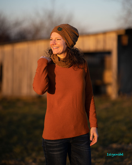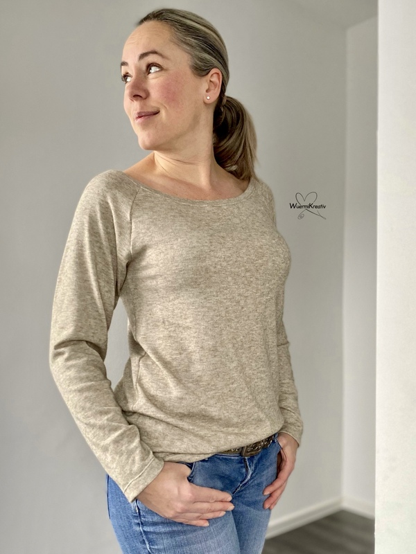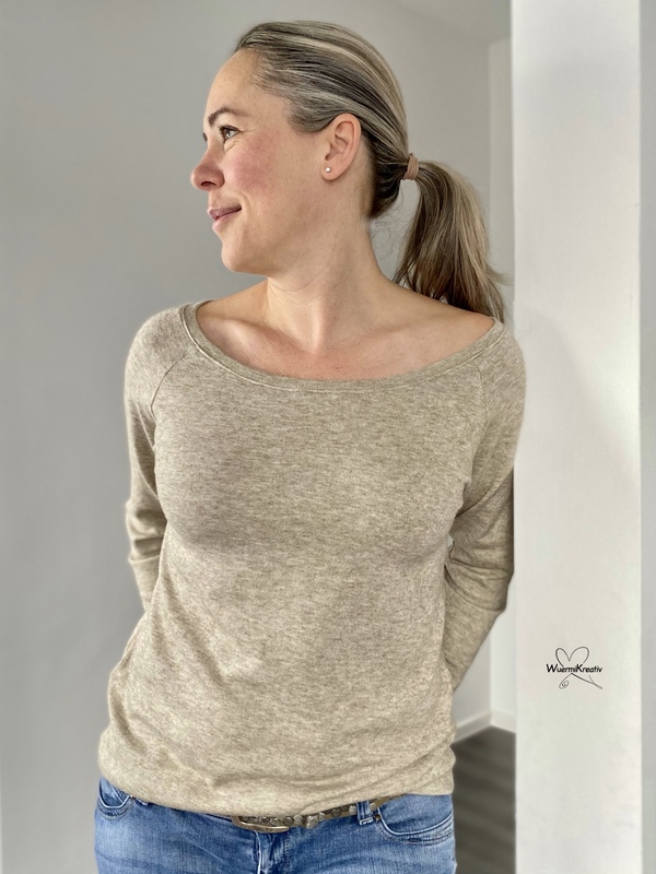 Zusammengefasst: Dieser Schnitt bietet dir einen Pullover mit 2 verschieden weiten Rundhalsausschnitten mit langen Ärmeln.