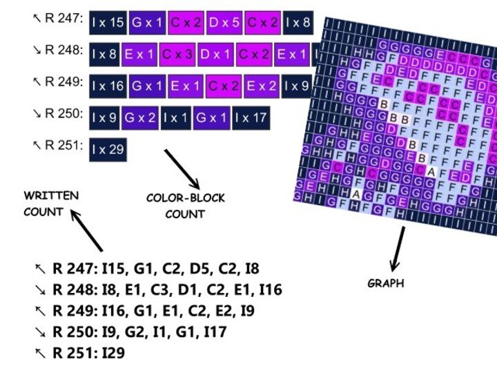 -farbige Zahlen-Blöcke für jede Zeile für C2C-Technik
