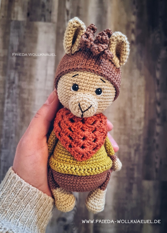 Diese Anleitung ist mein geistiges Eigentum und darf nur für den privaten Gebrauch genutzt werden. Die Anleitung darf weder veröffentlicht, verkauft, abgeändert oder getauscht werden. Fertige Produkte die nach dieser Anleitung gehäkelt wurden, dürfen in limitierter Stückzahl verkauft werden. Bildmaterial darf im Internet veröffentlicht und gezeigt werden, jedoch nur mit einem deutlichen Hinweis auf den Designer Frieda Wollknäuel.