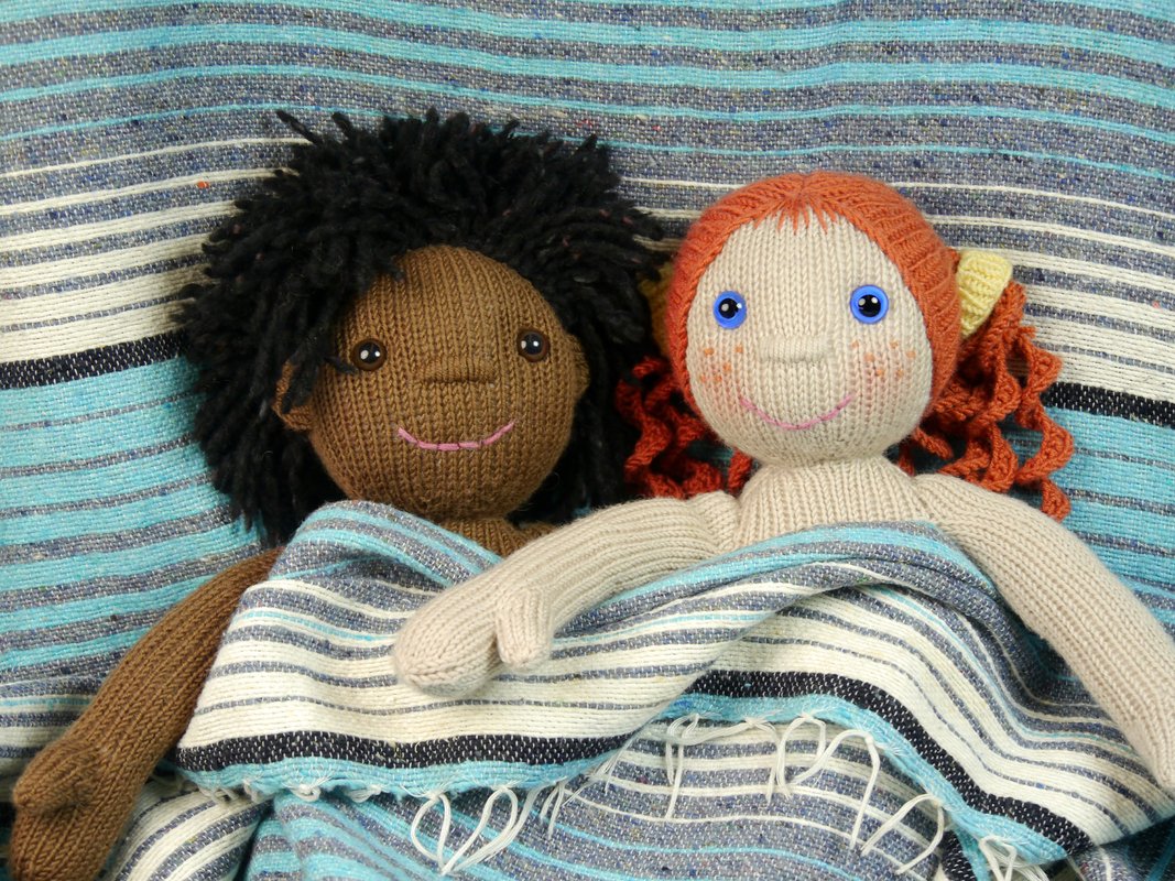 Übrigens: Anni und Olivia sind nach derselben Anleitung und mit demselben Garn gestrickt. Tatsächlich ist Olivia aber ein wenig größer – ich habe sie einige Monate später und offenbar etwas lockerer gestrickt, was sich auf die Größe ausgewirkt hat.